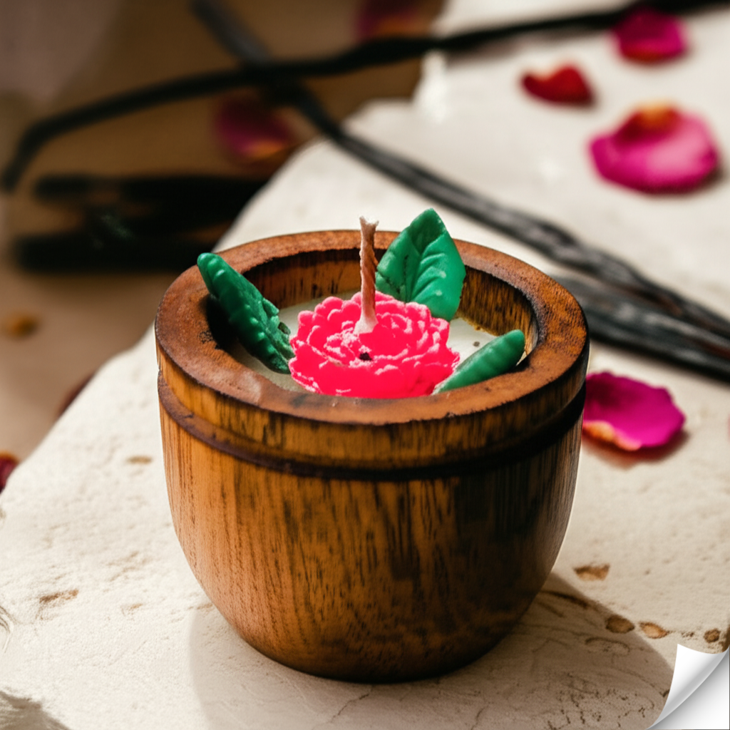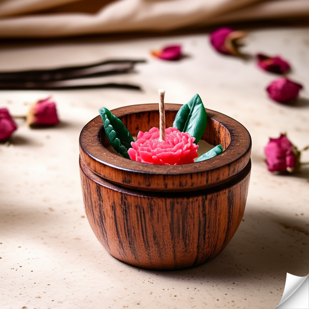 Artisan Craftsmanship: Encased in a finely crafted wooden bowl with rich grain, this candle combines natural elegance with a touch of rustic charm, perfect for display.