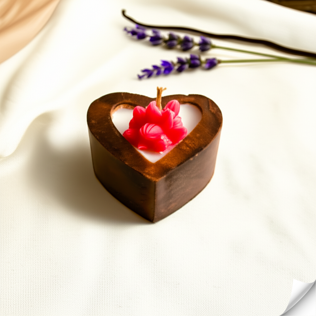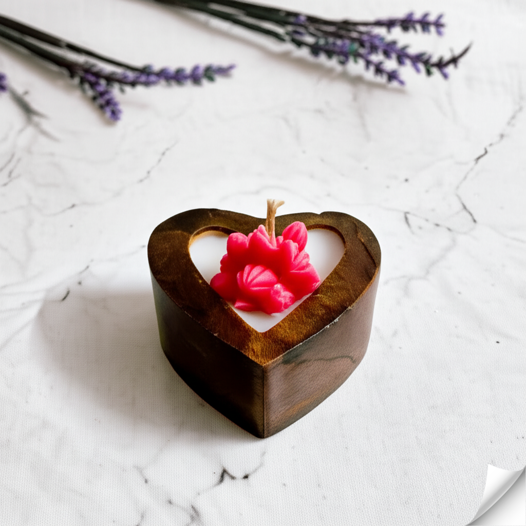 Colour White (wax) / Red (flower) / Brown (wooden container)